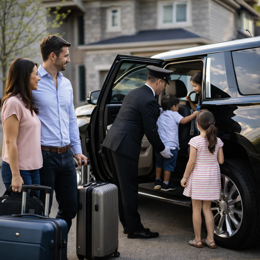 Brampton’s families are large, well-traveled, and frequently flying internationally to visit family abroad or vacation across the globe. Our chauffeur service from Brampton, Ontario, for families deploys genuinely spacious luxury SUVs—GMC Yukon (7 passengers, 6 luggage pieces), Chevrolet Suburban (6 passengers, 6 bags), and Cadillac Escalade (6 passengers, 6 bags). These vehicles accommodate full families with full-size suitcases comfortably — not the cramped, luggage-on-laps experience of a rideshare economy car.