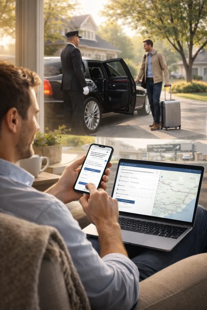 Step 5 — Safe, Comfortable Journey & Arrival: You travel in a fully climate-controlled luxury vehicle with leather seating, USB charging, and refreshments. Your driver manages all navigation and rest stop decisions. You arrive at your airport relaxed and on schedule — never rushed, never stressed.