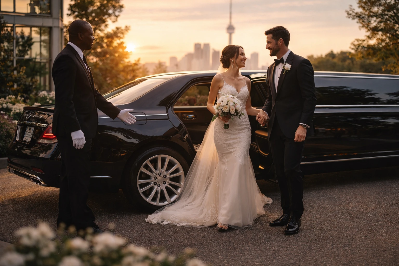 Third: province-wide GTA coverage under one provider. Whether your ceremony is in downtown Toronto, your reception is in Vaughan, your guests are being picked up in Mississauga, and your honeymoon flight departs from Pearson — we coordinate all of it. Our network covers every GTA community: Mississauga, Brampton, Markham, Scarborough, Burlington, Milton, Newmarket, and every other GTA community — all under one account, one invoice, and one consistent service standard.